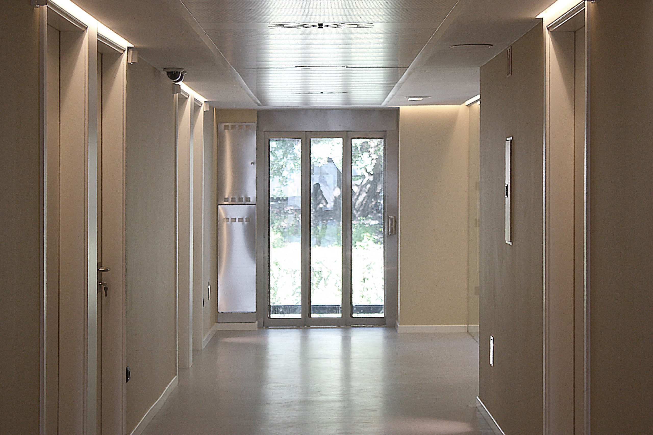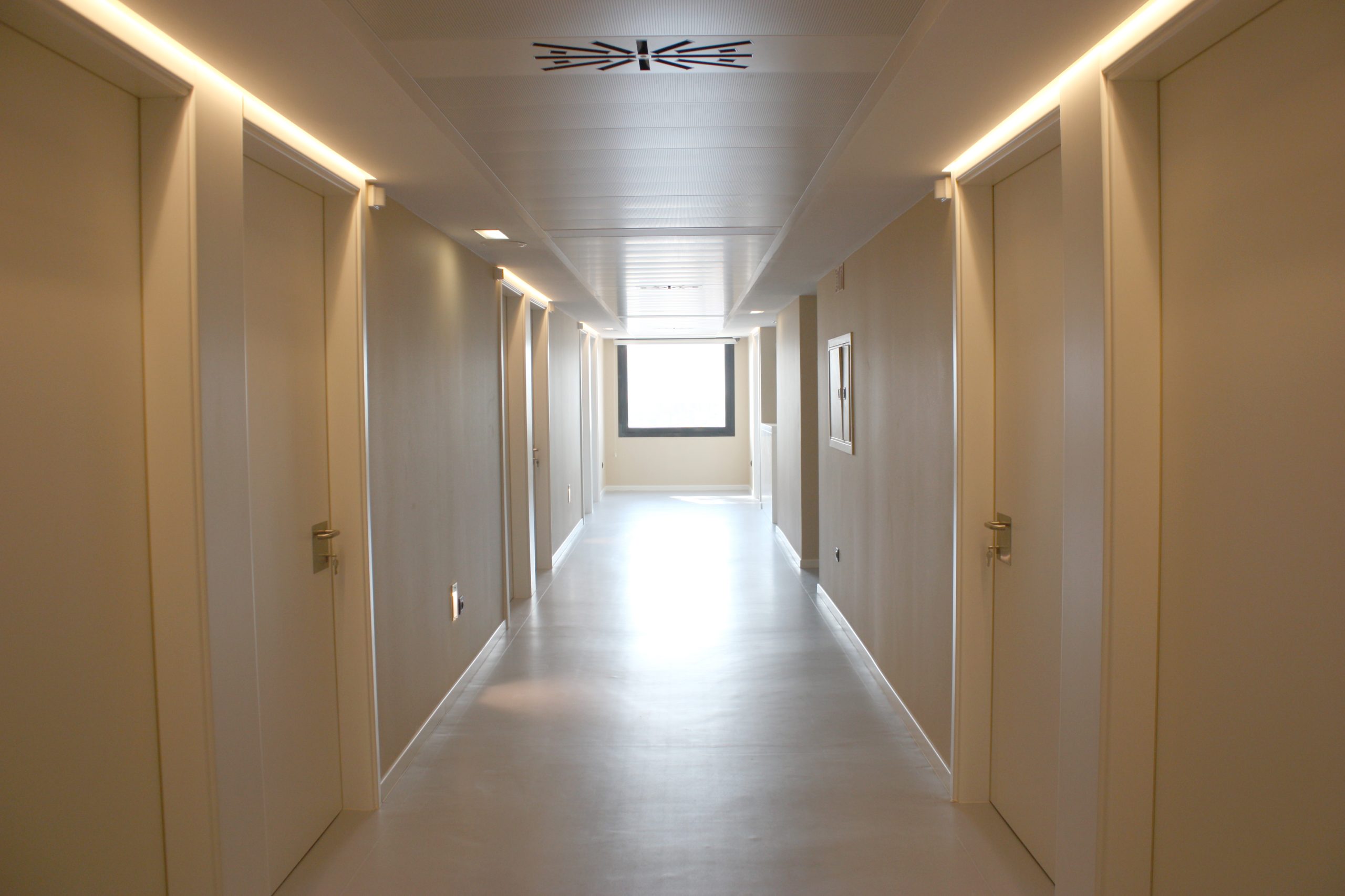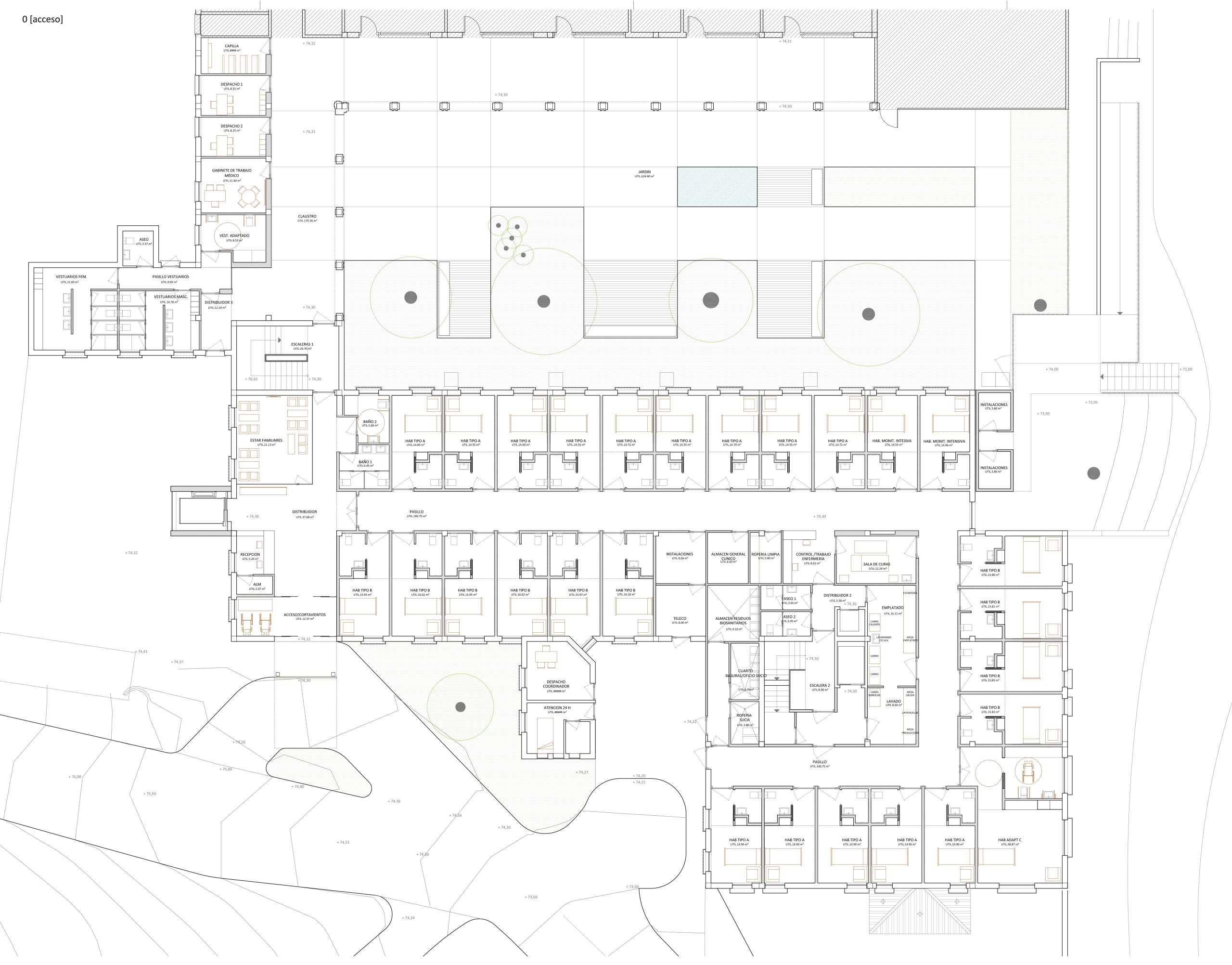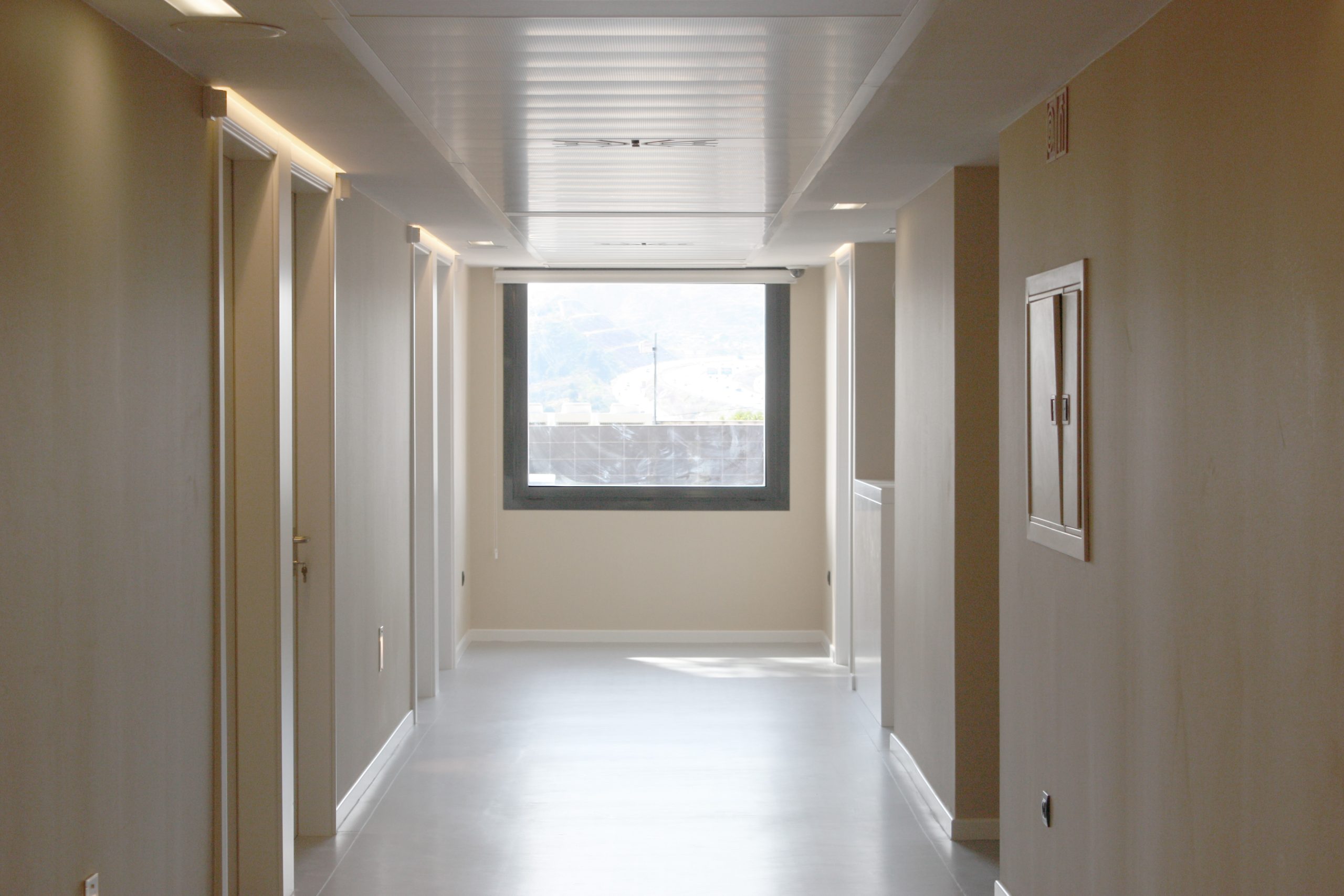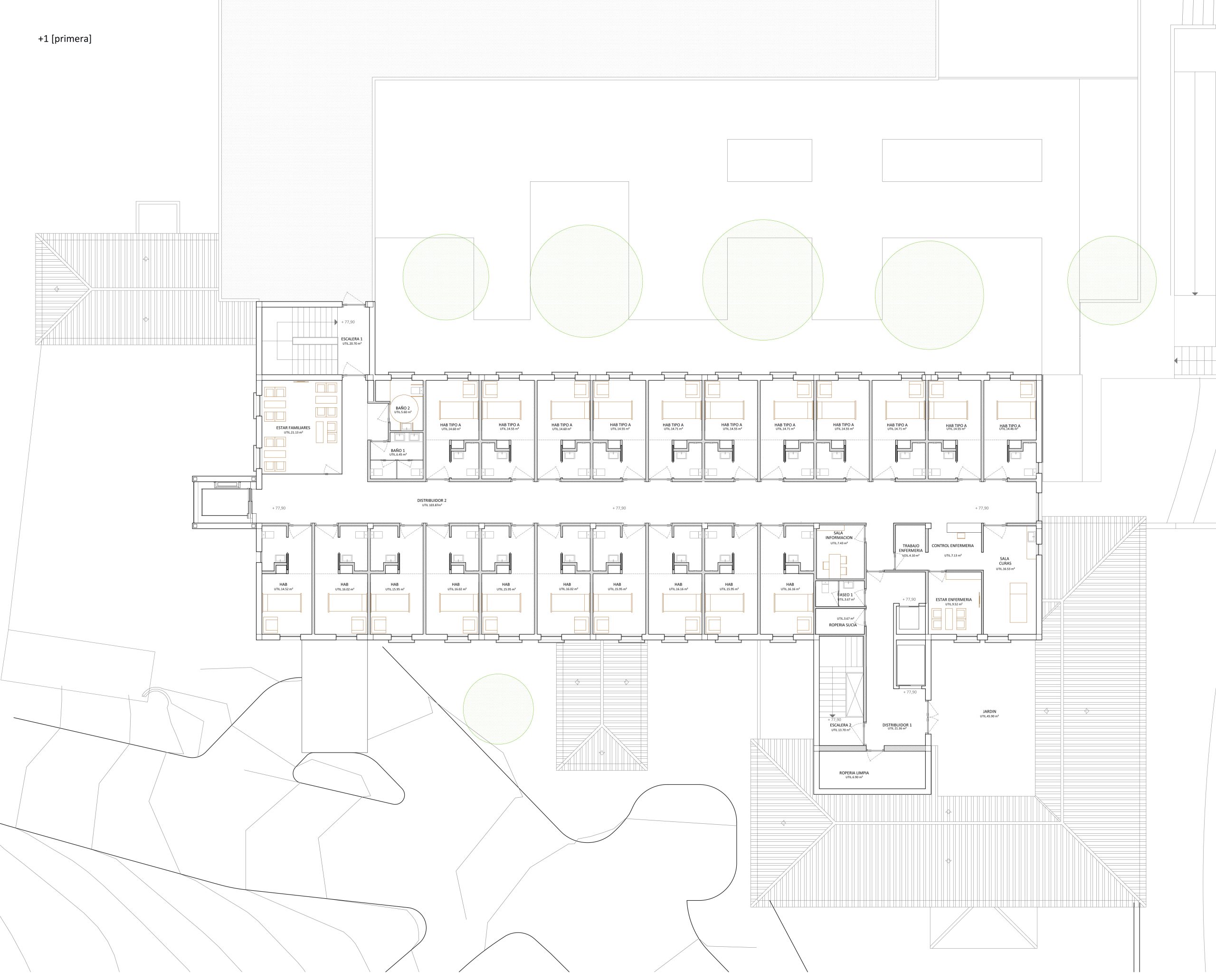 El proyecto plantea la reforma interior del hospital de salud mental y tratamiento de toxicomanías, adaptándolo para su uso como hospital de media y larga estancia. El objetivo principal es mejorar la accesibilidad con la incorporación de un nuevo ascensor de vidrio, que además permite la entrada de luz natural, así como la renovación de materiales para aportar mayor calidez y calidad al entorno.