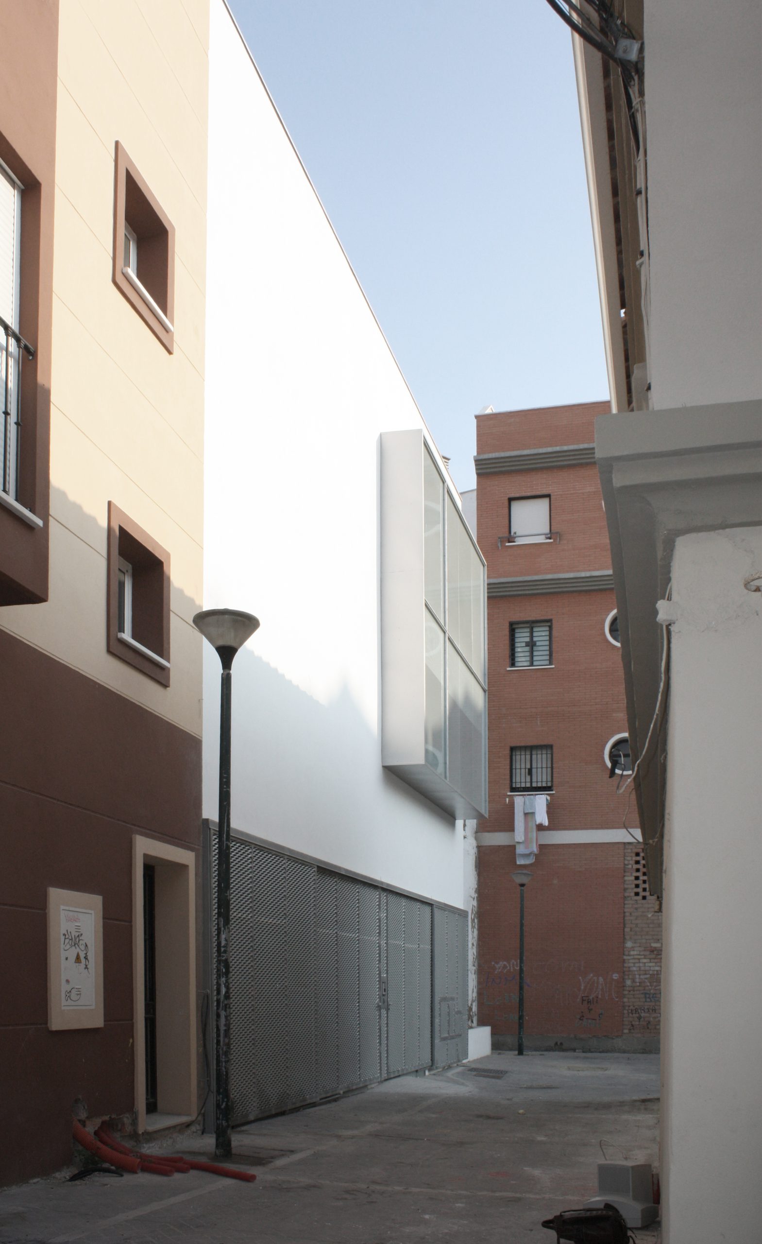 El crecimiento de la demanda llevó a la ampliación de la sede de la federación de personas sordas de Málaga en un solar adyacente, manteniendo su integración en un entorno exclusivamente peatonal.