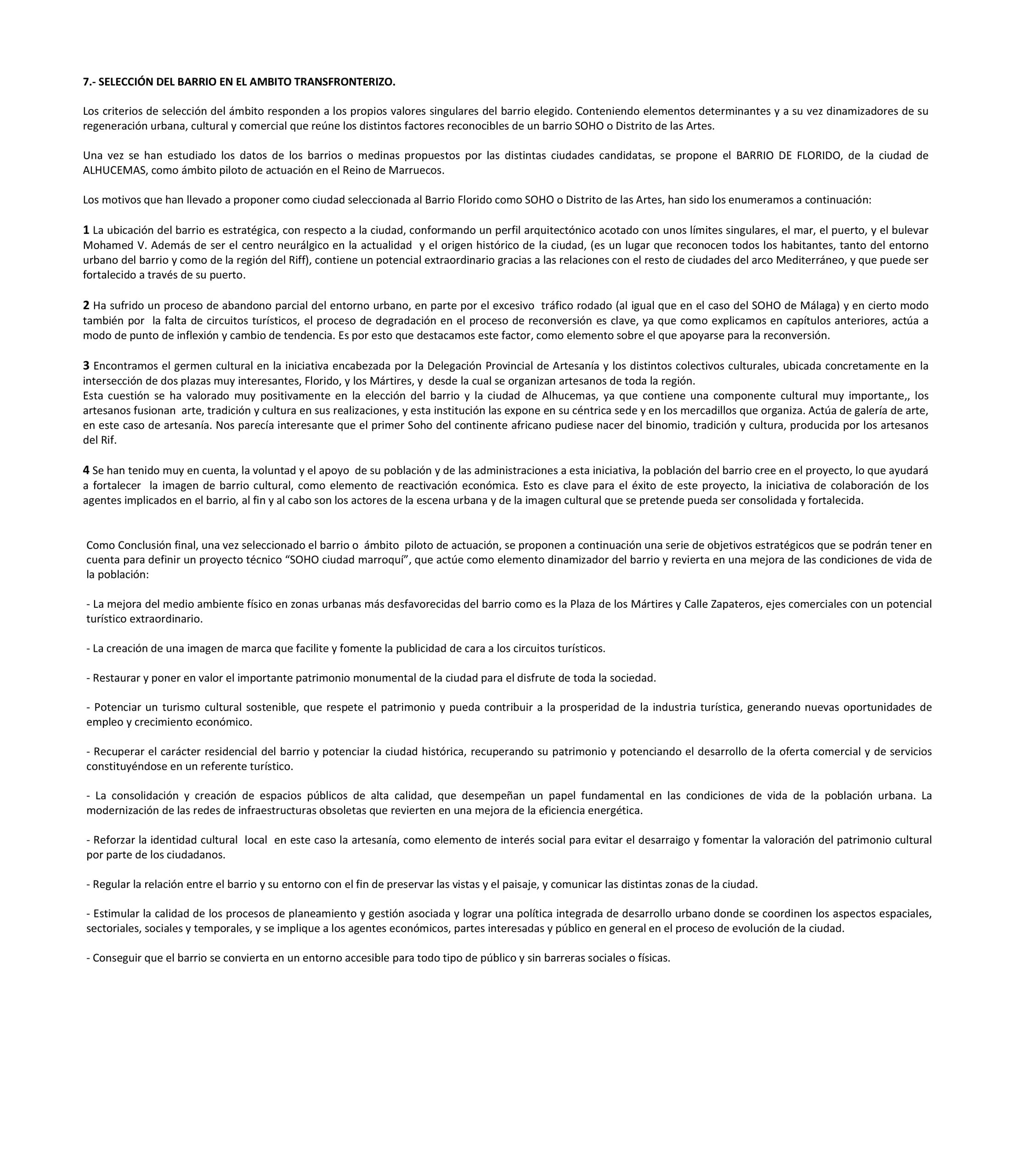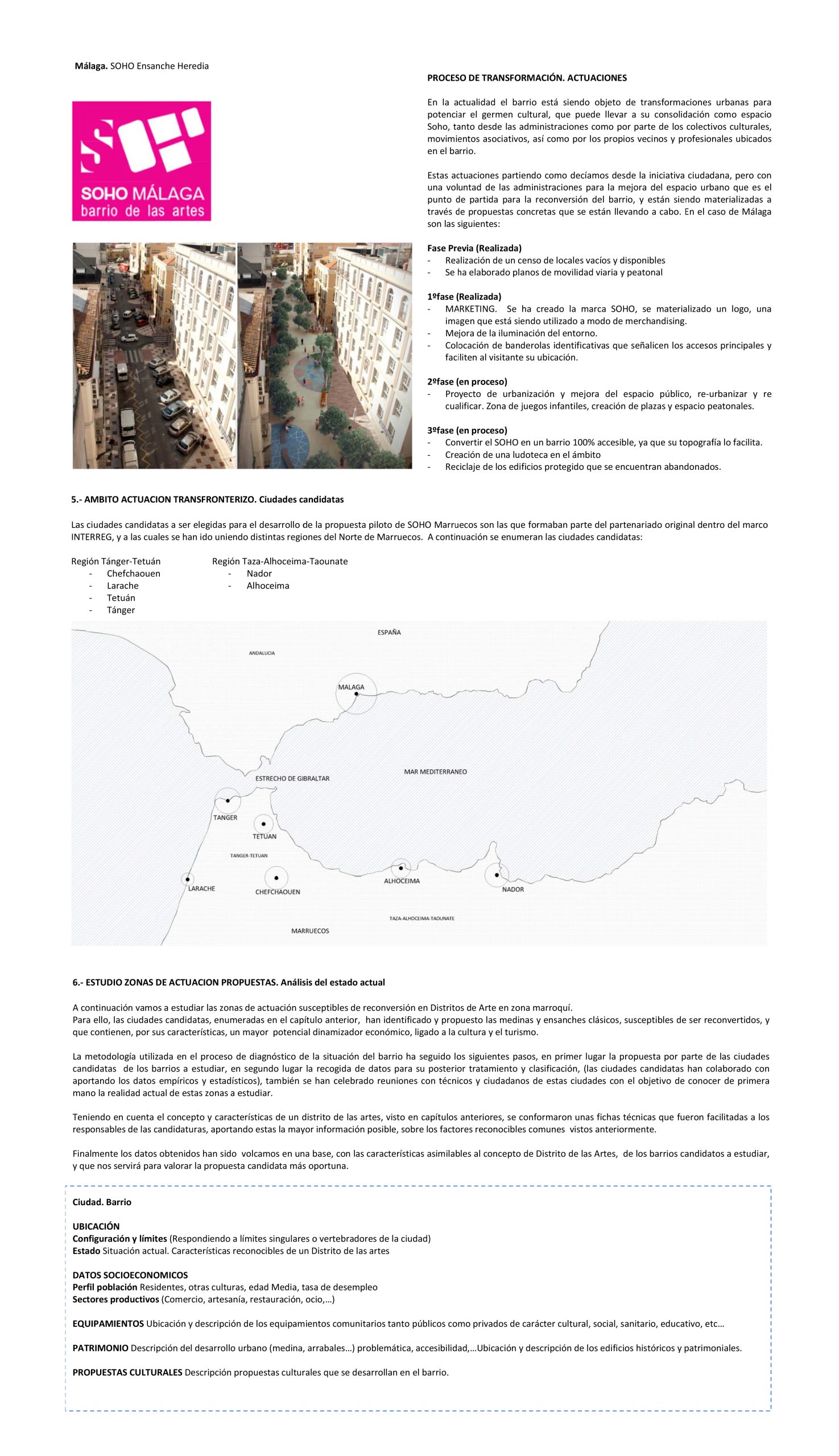 El proyecto SOHO busca revitalizar barrios degradados mediante su transformación en Distritos de Arte, fomentando el desarrollo socioeconómico, la conectividad territorial y la colaboración público-privada. Centrado en zonas históricas con potencial estratégico, especialmente en ciudades socias marroquíes, el proyecto busca evitar su degradación en guetos y convertirlas en motores de crecimiento urbano.